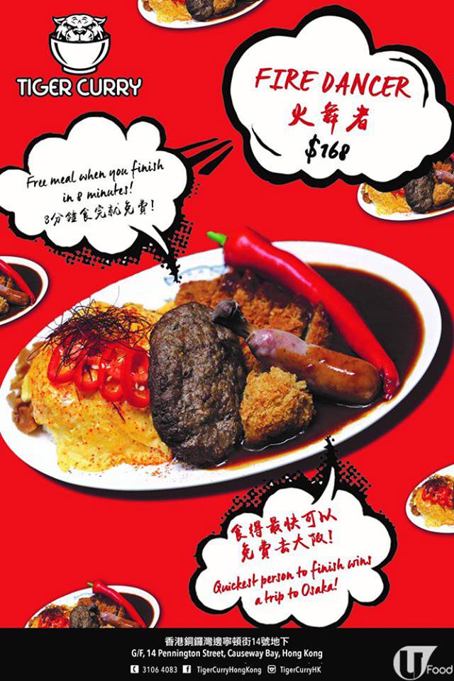 繼早前嘅大大份「巨型咖喱飯」,Tiger Curry 再舉辦新挑戰─—只要於 8 分鐘內食晒整個激‧辣咖喱飯,即可免費。