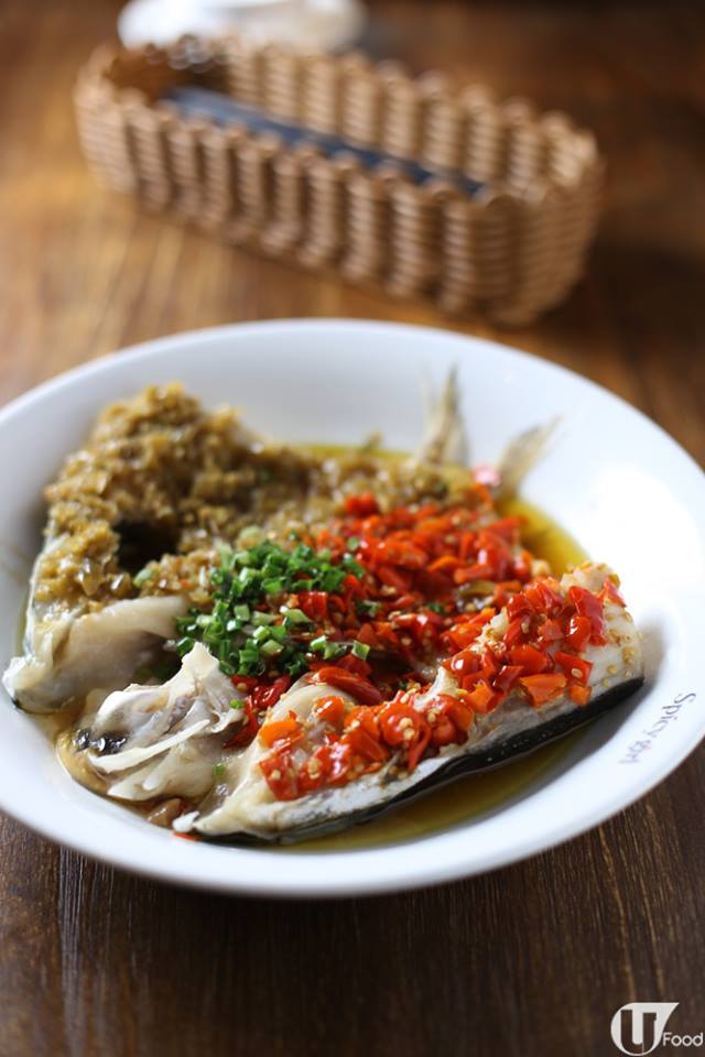 大鯇魚頭啖啖肉,一邊伴着酸辣的泡椒、一邊是香辣的剁椒,上枱前灒上滾油,有不同風格的香辣,亦可嘗到鮮嫩的魚肉。