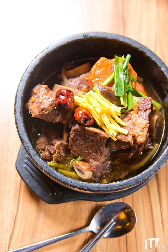 做這個牛肋骨要又煲又浸,用八角、紅棗、韓國醬油等 10 幾種調味料炆煮,牛肉離晒骨,肉甚至甘筍等配料都極入味軟腍。