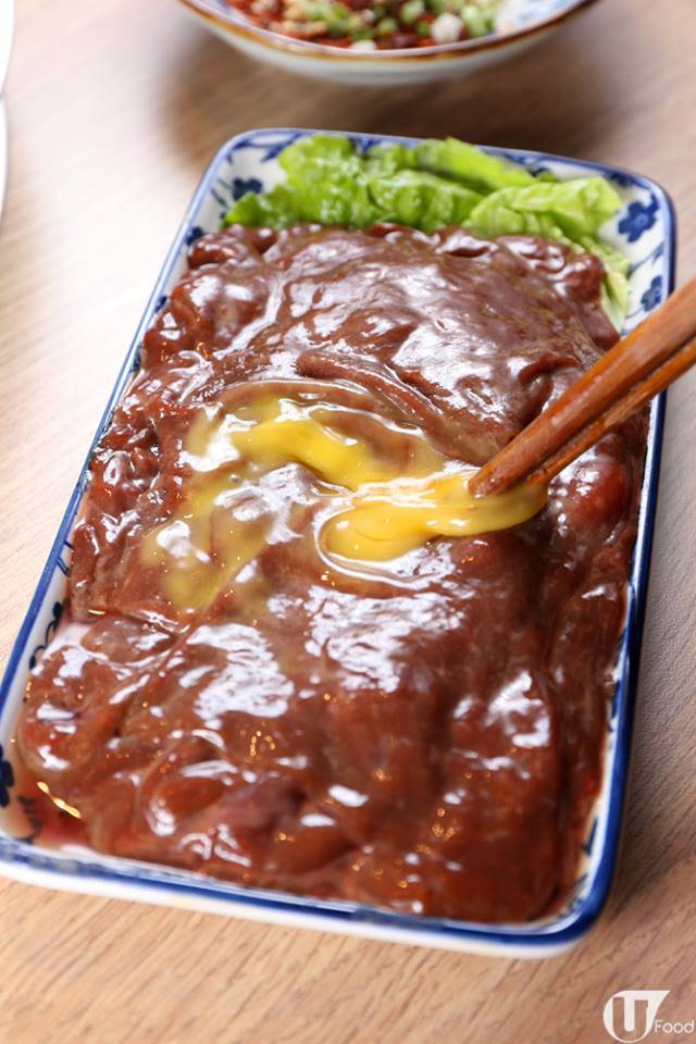 牛肝真係未吃過,呢度跟足總店供應這招牌菜,牛肝切得只有 1mm 薄,灼 1 分鐘就熟,用土薯粉撈過兼加個蛋黃,灼先撈勻蛋黃,淥久久都不會縮細太多,吃落又粉又嫩,唔會似膶咁多纖維。
