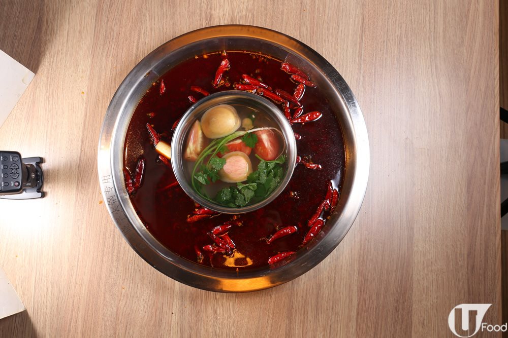 重慶人最地道的食法,一味選濃香的大紅鍋,一味選以蘋果、雪梨、馬蹄、香菜及清水的香果鍋,感到吃味太濃時,改以香果鍋灼配料,既清口腔,又有清潤效果。