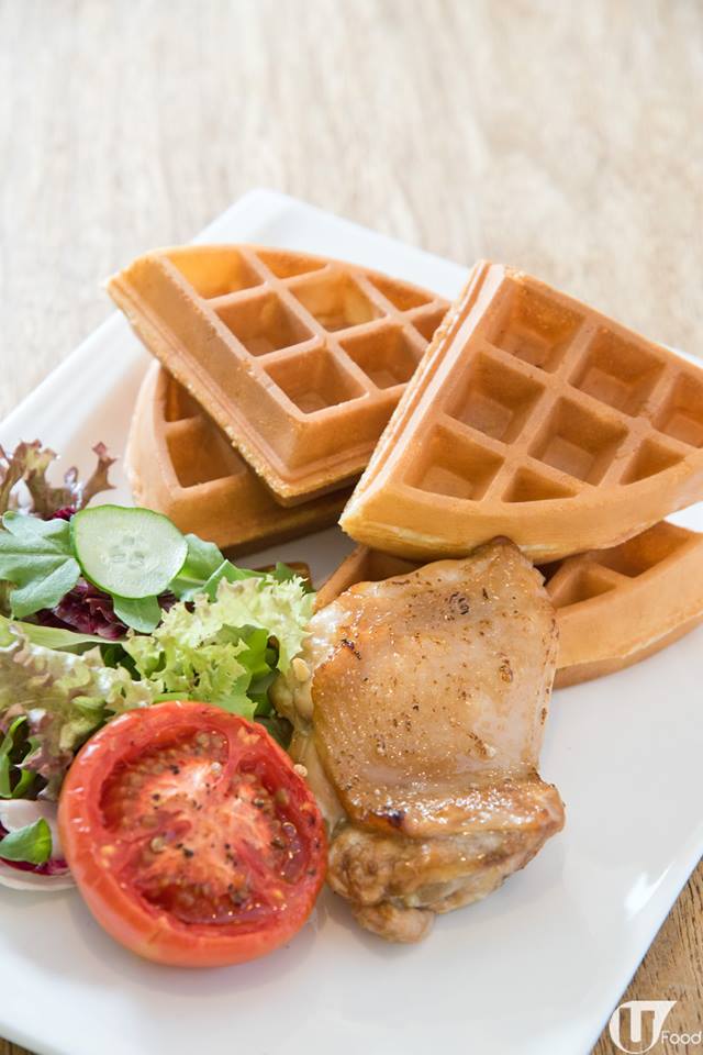 使用無激素走地雞,伴以麻醬蔬菜沙律。番茄慢烤個半小時,濃縮多汁。窩夫外脆內軟,蛋香滿滿。