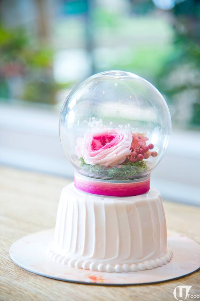 這森林雜莓雪芳蛋糕,上面的粉紅玫瑰花水晶球可拆出來存放 3 年,女仔收到一定 sweet sweet 呀!