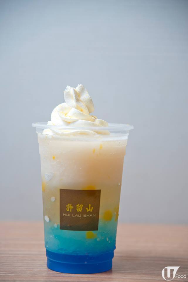 變色幻彩飲品真係大行其道,最近連許留山都推出變色果冰,呢杯藍柑橘荔枝變色果冰 ($27/16oz) 顏色好夢幻!上枱時係漸變藍色,藍色係用天然柑橘皮製成藍柑橘果糖漿,再加入荔枝冰、芒果肉及芒果爽,果香突出兼感覺清爽;最邪惡係唧上忌廉及芒果朱古力粉。攪一攪,即刻變色!鮮藍色與忌廉混和,即刻變咗 baby blue!飲落荔枝味搶晒鏡,味道略甜,幸好有酸咪咪芒果肉中和番。