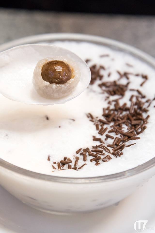 自創以純西米做皮,配搭朱古力做成小丸子,特別!