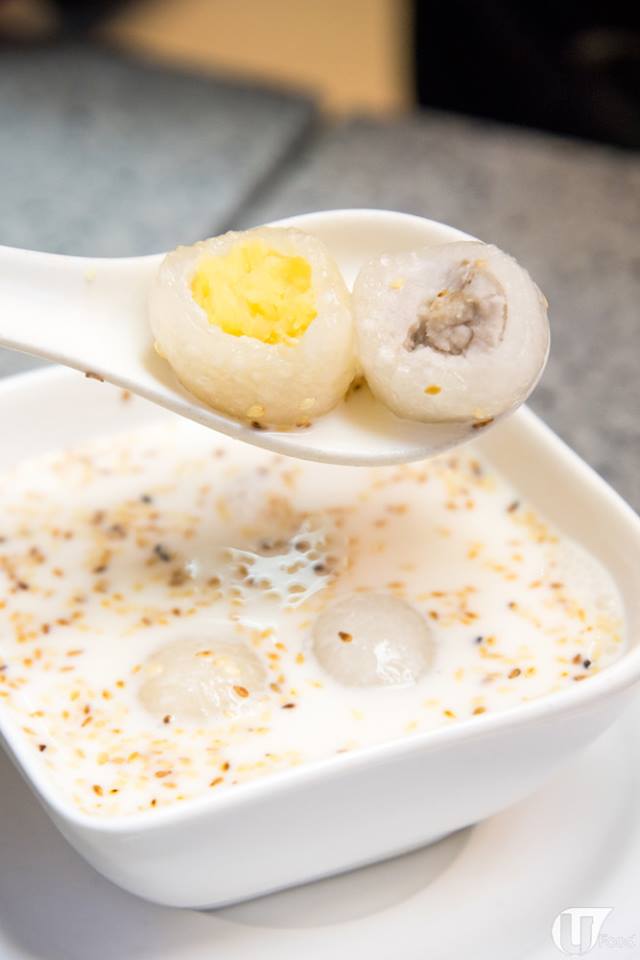 同類型的自創甜品,丸子外層是煙韌西米皮,不過今次內餡又換咗綠豆蓉及芋頭蓉,配熱椰汁西米露,灑上芝麻,香噴噴。綠豆丸味道唔算太突出,比較清淡;而芋頭丸則有芋頭的甜香味,軟軟糯糯,好啱秋冬天吃。