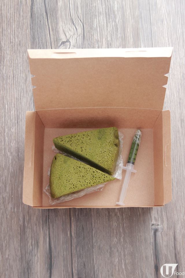 香港嘅馬拉糕近排上榜 CNN 世界最好食嘅 17 種蛋糕,Tiff 負責人就靈機一觸諗到呢個中、日 fusion 嘅抹茶馬拉糕。一打開個盒,就聞到陣陣馬拉糕嘅香味,即使隔咗一晚,香味依然。盒內除咗有馬拉糕,仲有一枝抹茶 Lattè 針筒,全用保鮮紙包住,食起嚟方便又衛生。