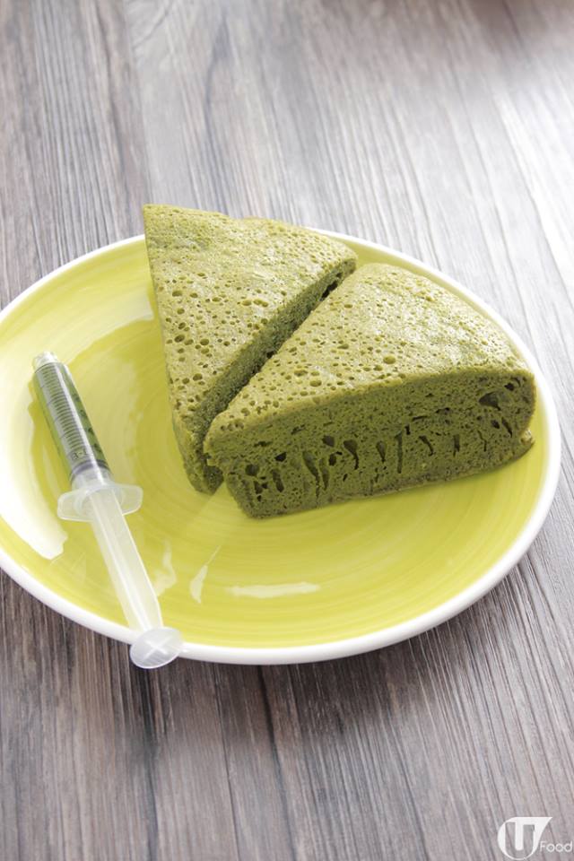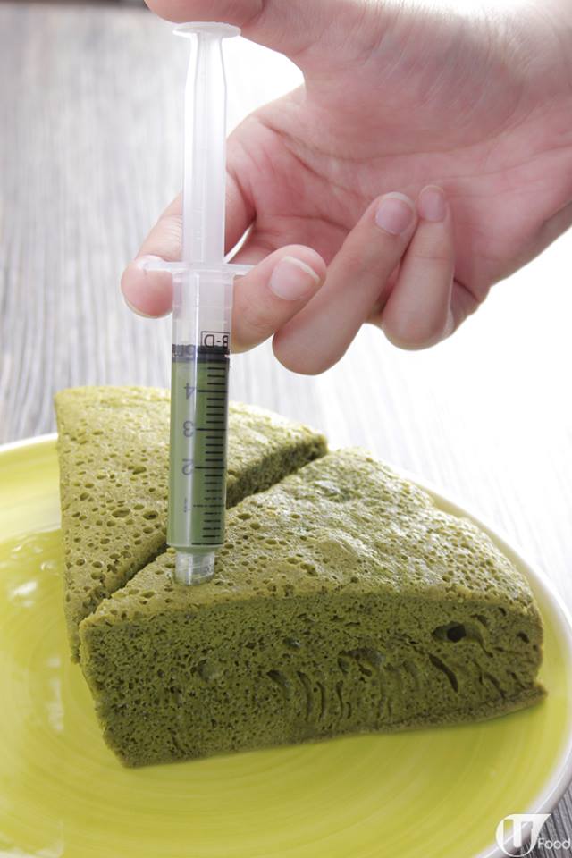 Tiff 為咗令馬拉糕裏裏外外都充滿抹茶味,仲新研究出一枝抹茶醬!加咗牛奶嘅抹茶 Lattè 醬 creamy 甜甜哋,仲搞鬼咁用特效針載住,畀你打針咁打落馬拉糕度,好玩得嚟抹茶更濃,味道又甜啲,抹茶控大愛!