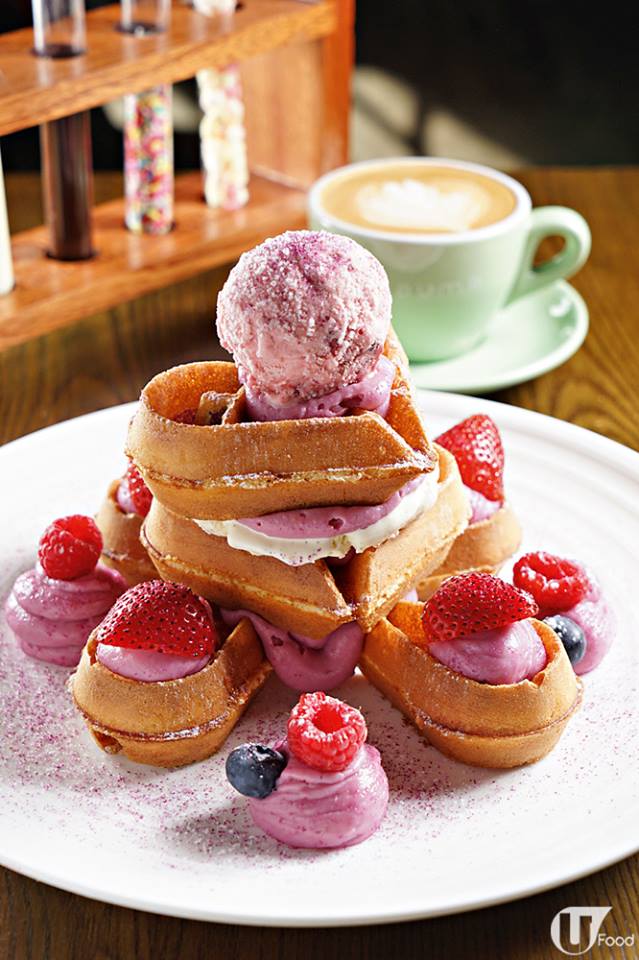 紫薯窩夫配雪糕(灣仔及中環店) $88 (半份) / $128 (全份)、(尖沙咀)$68 (半份)/ $105(全份)