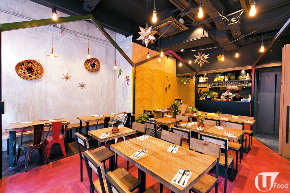 店子刻意與快餐店常用的鮮橙色劃清界綫,特以用上淡黃與水泥灰作主色調,店主說這柔和色調靈感來自當地一個叫Oaxaca的地方。
