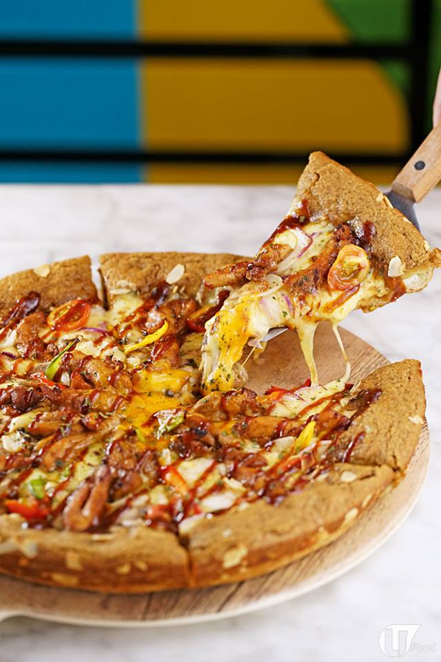 新登場的有芝加哥薄餅,薄餅底以黑米及多種穀物製成,加入雙倍Mozarella芝士及蜜糖杏仁批邊,口感層次昇華,甜蜜滿瀉。至於其獨創的綠茶薄餅,麵糰除了綠茶成分外,還添加了亞麻籽、小球藻、大麥等共12種健康穀物,令餅底香口又有彈性,吃得健康。當然不能錯過大熱的炸雞,款式多達9款,包括大賣的蒜香甜辣秘製炸雞、紫蘇秘製炸雞、蜂蜜蒜泥炸雞等,總有一款適合你的口味。除薄餅及炸雞外,亦加入更多特色食品,食材大部分來自韓國,絕對韓味。新店更設大型投射器播放K-pop,令你完全投入韓味世界。