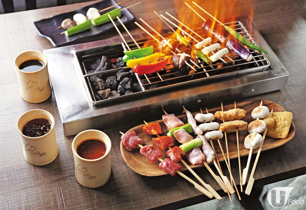 任食食品款式多,有燒生蠔、牛肩肉、香草羊背肋、黑豚腩片、糯米雞肉棒、墨魚鬚、日本青椒仔、三色甜椒、日本大葱及魚翅福袋等,食材新鮮,只需簡單燒香已非常美味。