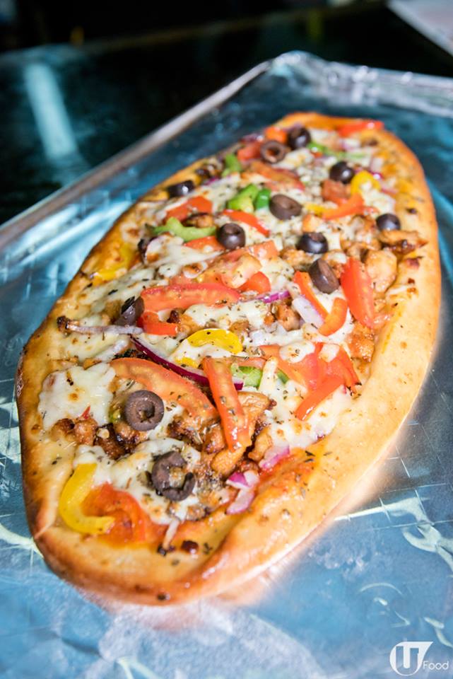 9 吋大船型「烤雞肉薄餅」($48),造型特別,香料味濃。