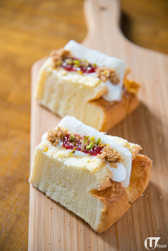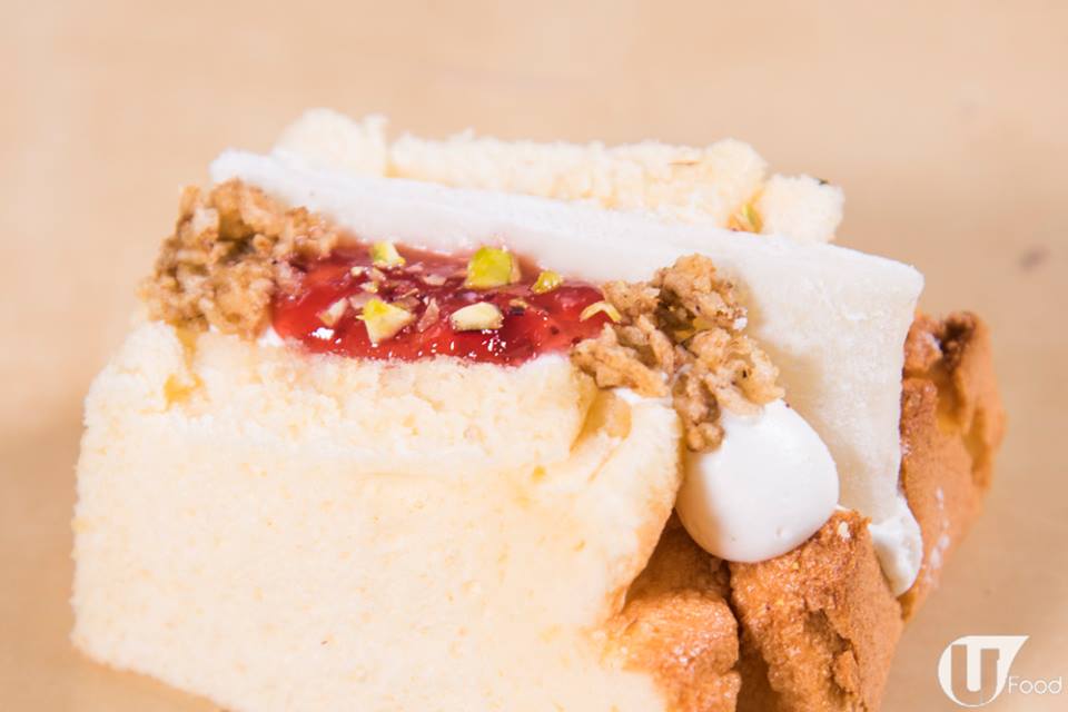 呢間 Ig 店叫 The Mochiffon Cake,店主 Ariel 好鍾意食煙煙韌韌嘅嘢食,自己又擅長做戚風蛋糕,於是製作出外表似三文治、用戚風蛋糕夾住自家製麻糬嘅 Mochiffon Cake。