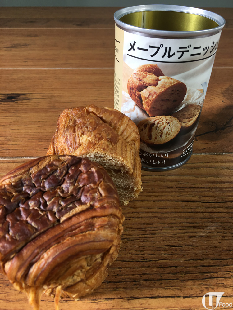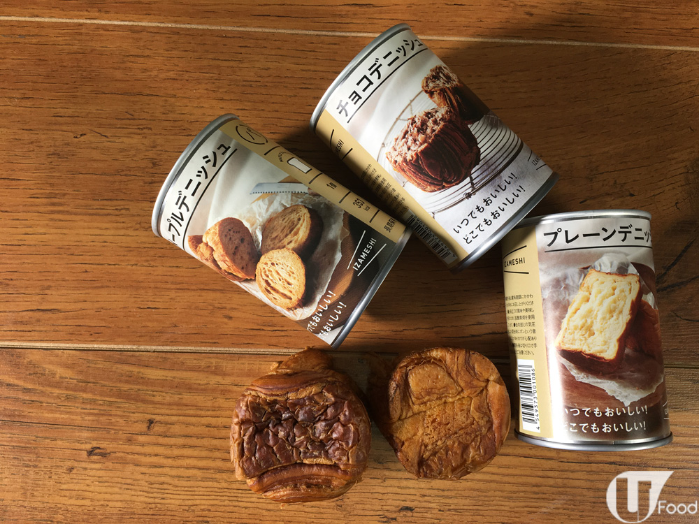 咁架勢,即刻引發我嘅好奇心!有「酥化甜麵包」、「楓糖酥化麵包」及「朱古力酥化麵包」3 款口味;睇睇包裝,係日本的 Izameshi 出品,品牌專門製造即食及防災食品,呢 3 款麵包的賞味日期同時去到 2019 年,應該屬於防災食品。唔好以為防災食品質素一定差,拉開罐頭蓋,一陣超香的麵包味即時散發出來,賣相似酥皮丹麥麵包咁,食落幾鬆化,而且牛油味都幾香,不過有點乾身,始終唔夠新鮮麵包咁有彈性。個人心水係朱古力及楓糖味,香香甜甜,用嚟配雪糕幾好味。$70 一罐係貴咗啲,但宅男宅女打風唔想無嘢食,可以考慮買番罐看門口。