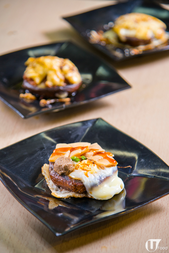 巨型牛扒菇加埋超濃香的配料,焗完好 juicy。黑松露味菇 $30(前)香突出、鹹牛肉 $25(中)味道甚 rich,招牌嘅流心芝士蛋$25(後)則蛋香四溢。