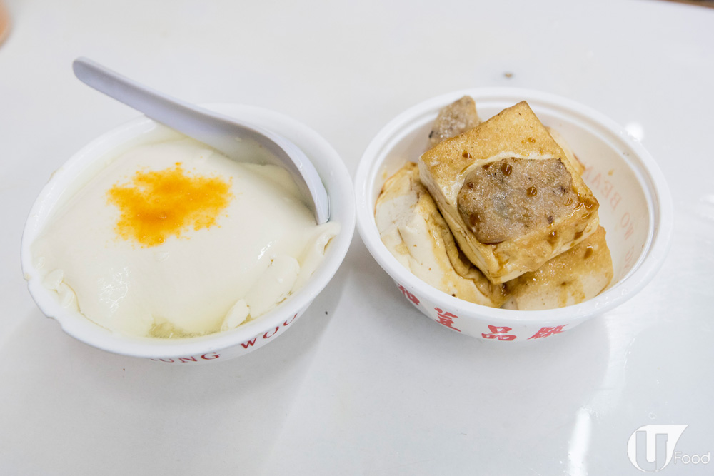 豆腐花外表及質地比平日食到的實在,卻非常嫩滑,而且更有香濃的黃豆味。煎釀豆腐則釀了鯪魚肉,每件煎到有金黃邊,魚肉彈牙有口感,配埋豆味爆燈的豆腐,一絕。