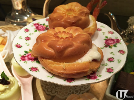 甜點方面,我最鐘意呢個 紅豆蓉忌廉花形餡餅,以日式和菓子模樣做藍本,花花 waffle 質地嘅外皮夾住紅豆蓉忌廉,creamy 軟綿綿,香甜不膩。