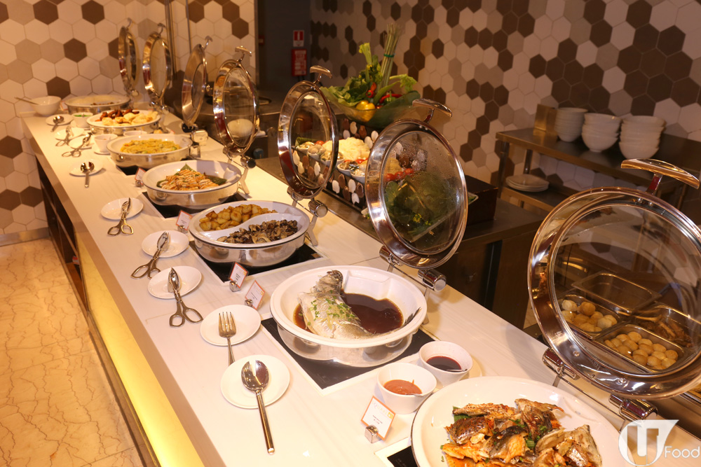 Lunch Buffet 鎖定太太客為目標群,知道她們心理上愛暖笠笠海鮮多過生冷嘢熱氣嘢,特設原條蒸海鱸魚、日式魷魚、惹味印度咖喱及一品海鮮煲,仲有一大煲滋補豬腳薑!