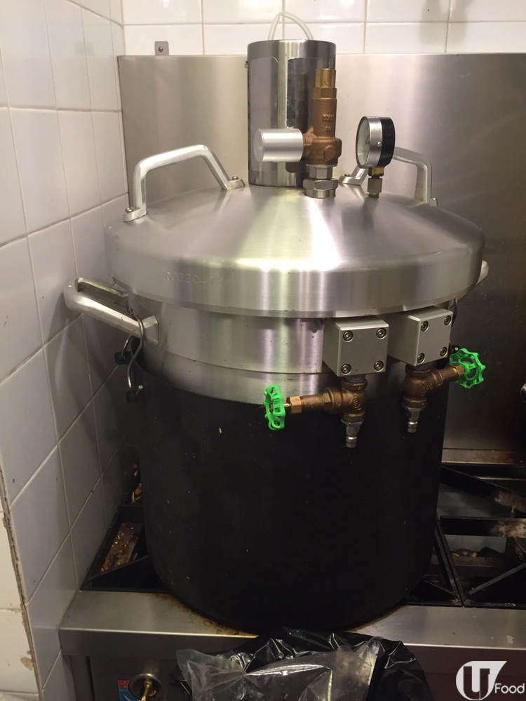 濃湯就是用這個超級壓力煲煲成,豬骨雞骨及蔬菜放在裏面高壓煮 2 小時,就灰飛煙滅,變成奶白色濃湯。