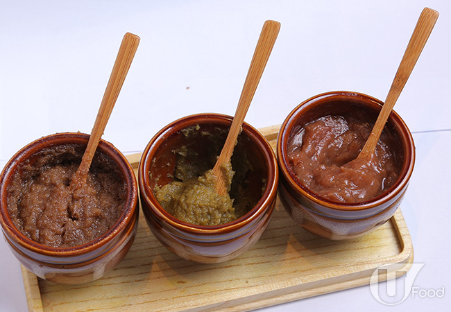 客人可以自己添加梅子醬、柚子胡椒或黑蒜油醬,都是日本直送的。