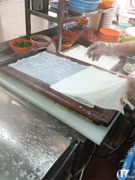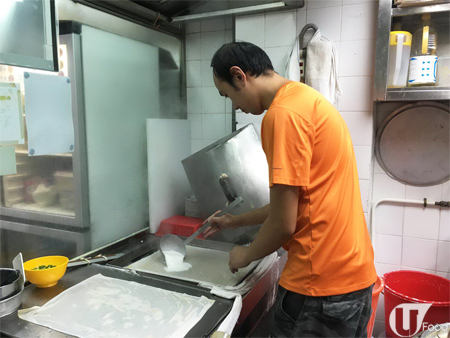 腸粉品唔會預先整定,有柯打即動手倒粉漿拉成。
