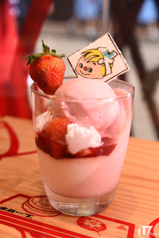 Fancy 嘅粉紅色甜品,base 是士多啤梨味布甸及牛奶布甸。加埋新鮮士多啤梨、芝士蛋糕、開心果脆粒及士多啤梨雪糕,成杯小芭菲咁繽紛。