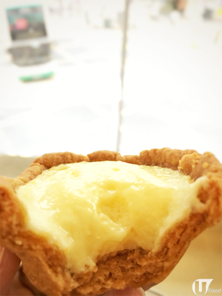 蛋撻的「燉蛋」部分,同樣脹卜卜,摸上手熱燙燙,好似剛剛出爐!「蛋」質感好滑溜,色澤與口感像真度超高,其實係用咗吉士粉、椰漿及糖造成,唔怪得有陣陣香濃的椰子味;至於撻底,雖然無加豬油或牛油,但亦好鬆化;素食者固然過足口癮,唔係素食者,都覺得好吃。