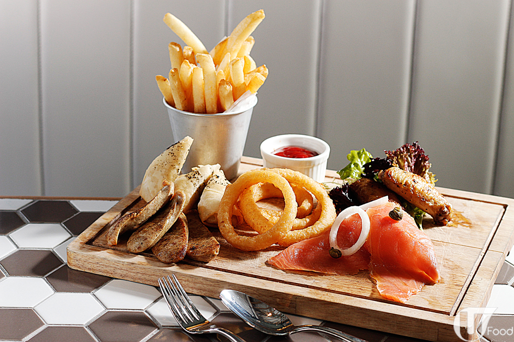 吃貨們都是貪心的,食埋這道有齊煙三文魚、羅勒香草雞翼、烤特色腸、脆炸洋葱圈、黑松露脆春卷、脆薯條自家製胡麻醬沙律的幸運七式拼盤 ($108),齊齊捧住個肚離座。