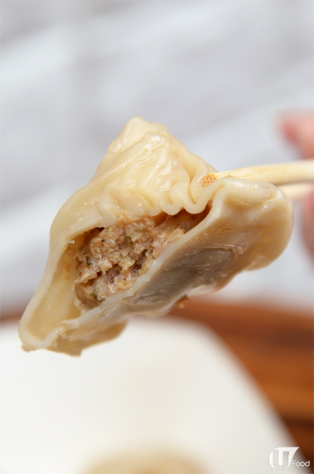 鮮肉小籠包外皮也是 1mm 厚,這款湯汁約佔 3 成,小籠包風格是海派的,豬肉口感實在,肉味鮮甜,幾有嚼頭,這款更能吃到外皮的煙韌。
