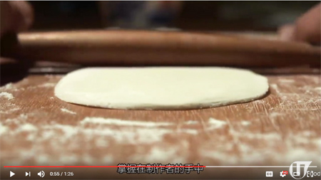 湯包皮以傳統的雙棍扞皮,棍子呈尾尖中間厚的欖核形,能扞出邊位厚、中間薄的麵皮。(《舌尖上的中國》截圖)