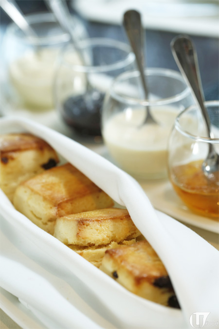 Tea Set 唔少得重要主角—— 自家製原味及提子味鬆餅。有 Vanilla Custard、忌廉、藍莓果醬及橘子果醬 4 款配搭,都係自家製作,好有 heart。