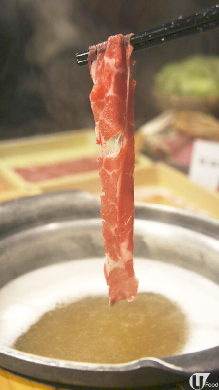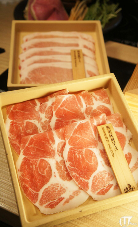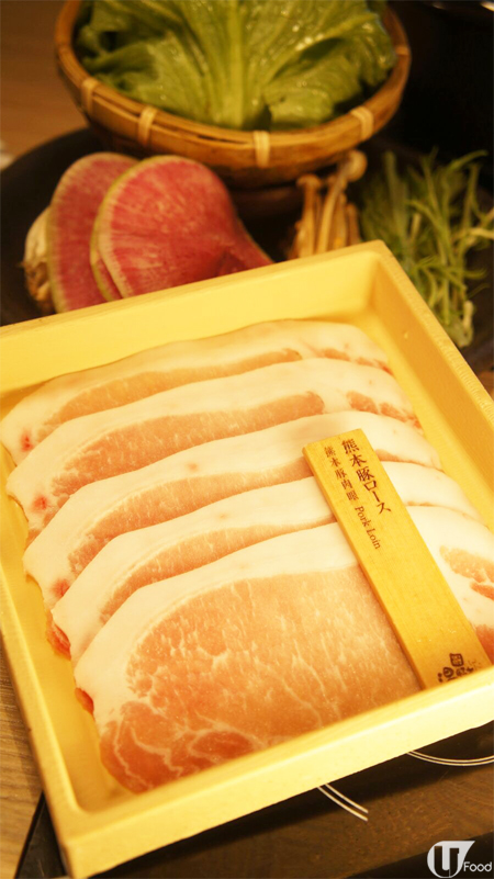 熊本豚肉質素不錯,雪見鍋定食內包括熊本豚肉眼、熊本豚腩肉及熊本豚梅肉各一客。熊本豚梅肉嘅肉質具彈性,有咬口。