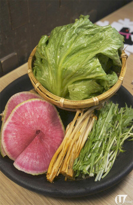 野菜是餐廳皇牌,套餐有日本直送嘅 生菜、本菇、啡金菇、水菜紅心蘿蔔