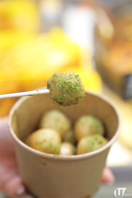 海苔味魚蛋即是在原味魚蛋上,灑上海苔粉。紅油炸嘅魚蛋彈牙唔腥,可惜海苔味唔突出,食麻辣味正啲!