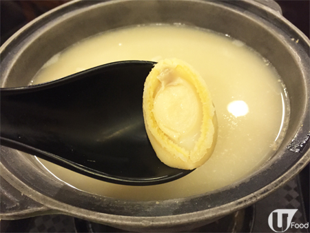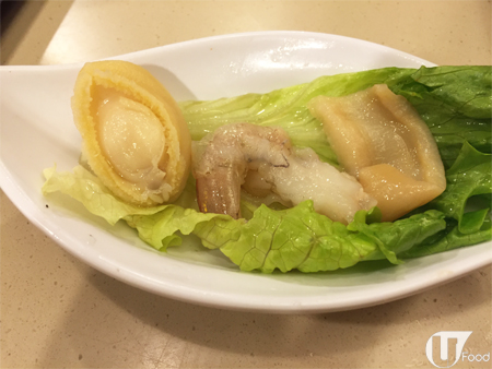 原隻鮑魚 size 比較迷你,匙羹都大隻過佢!唔建議大家將鮑魚灼太耐,否則愈縮愈細粒!味道欠奉淡淡的,就連平時假鮑片嘅味精味都無,唯有點啲豉油或沙嗲醬食啦!如果想追加鮑魚,$25 有一隻。