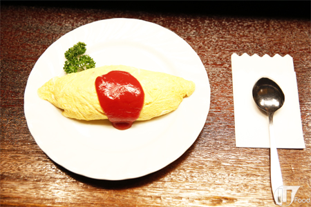 (5) 在平底鍋上蓋上一個盤子,接着將鍋子倒置,讓蛋餅和飯一同落在盤子上,加上 parsley 及茄醬即可上碟。