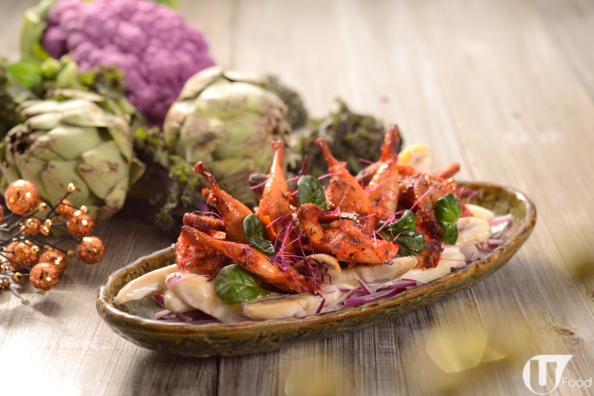 選用法國鵪鶉烤香,肉質鮮嫩,大廚更破格採用印式烹調方法,令菜式更添惹味。
