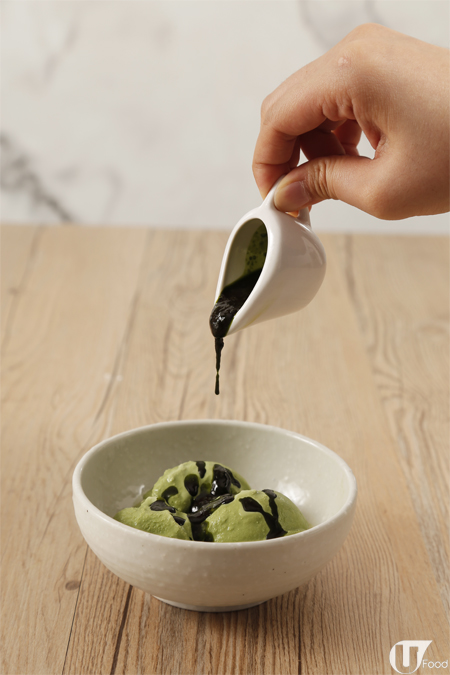 半圓形嘅抹茶果仁脆用 20% 白朱古力製,香甜之中可突出抹茶味,加埋杏仁、開心果,口感脆卜卜,食唔停口!
