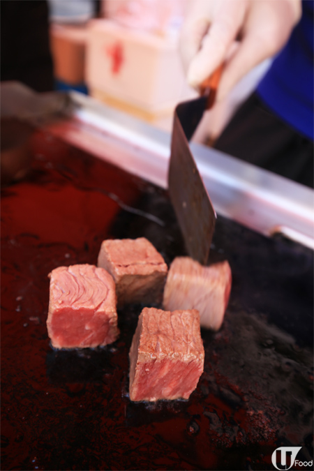 喺同一個攤位,有燒牛肉粒食。用美國安格斯牛製,每粒最少 1 吋 x 1 吋咁大,好大粒!燒得香口,入口牛香和肉汁爆破。