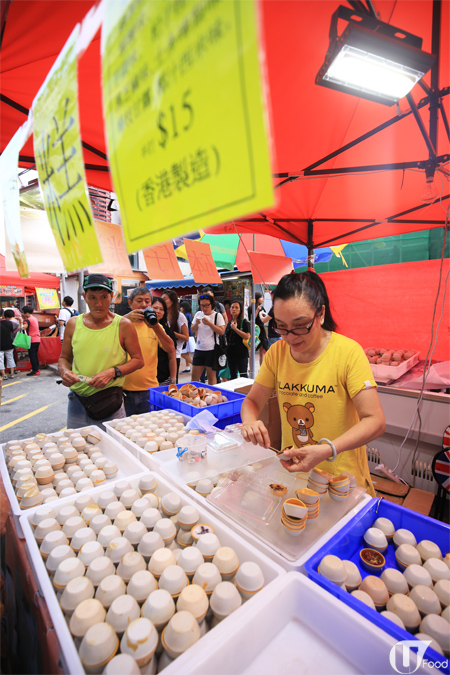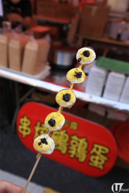 鵪春蛋串近來在市集好 hit,細細隻,賣相過癮!蛋邊燒得脆口,有原味($15)、黑松露味($20)和魚子醬味($20)