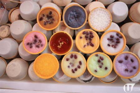 現場見到排晒長籠嘅 一口砵仔糕,有 12 種口味,黃糖、白糖、豆沙、綠茶、芒果、榴槤、杞子桂花、士多啤梨、黑芝麻、芋頭、楊枝甘露、椰汁西米,令人花多眼亂!做成一口 size,食得滋味過癮!小記最喜歡杞子桂花,好清香。