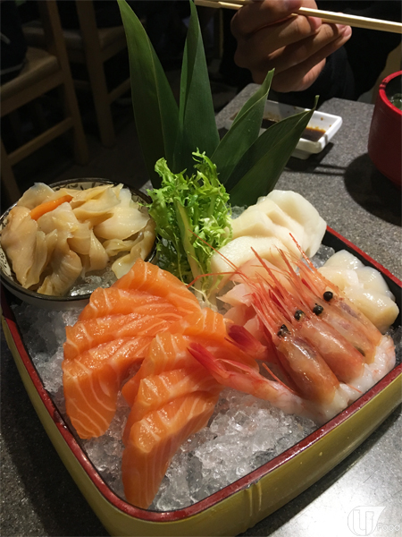 食日式放題第一件事,係食刺身!呢度有 三文魚、八爪魚、帶子、甜蝦,仲有 白肉拖羅、鯛魚、象拔蚌等,10 款選擇唔算多,但勝在有部分比坊間的特別。