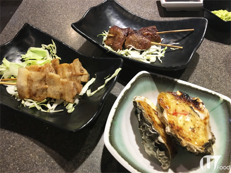 燒物都有 10 款,包括 燒汁翠玉瓜串、芝士蟹子燒帆立貝、鹽燒雞中翼、鹽燒黑豚肉串、鹽燒海老串、北海燒蝦等,選擇都幾多元化,我最鍾意鹽燒牛舌同黑豚肉,好甘香惹味