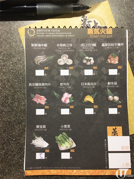 食記採訪當日只有 2 人同行,所以食唔到。不過望望落單紙都有海鮮、肉類同蔬菜,仲有埋建議蒸煮時間,幾專業貼心,最重要係,抵!