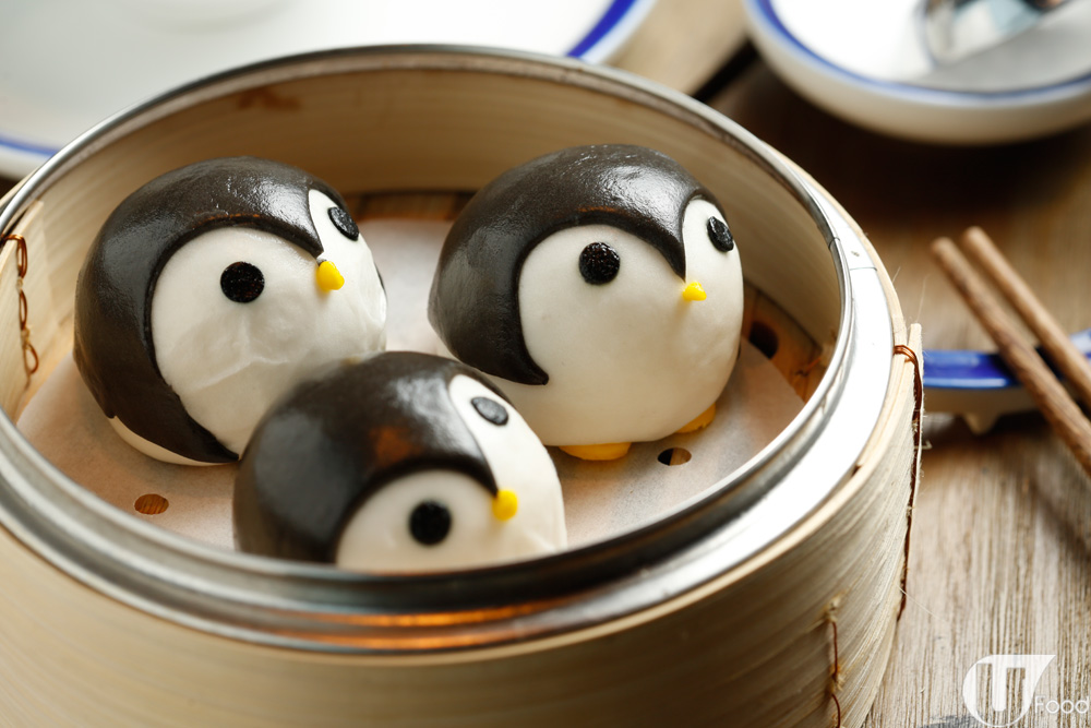酒鍋本身有款火鍋墨魚丸叫「開心小企鵝」,設計點心時都做「開心企鵝包」,其實係白蓮蓉包,賣相好 cute。
