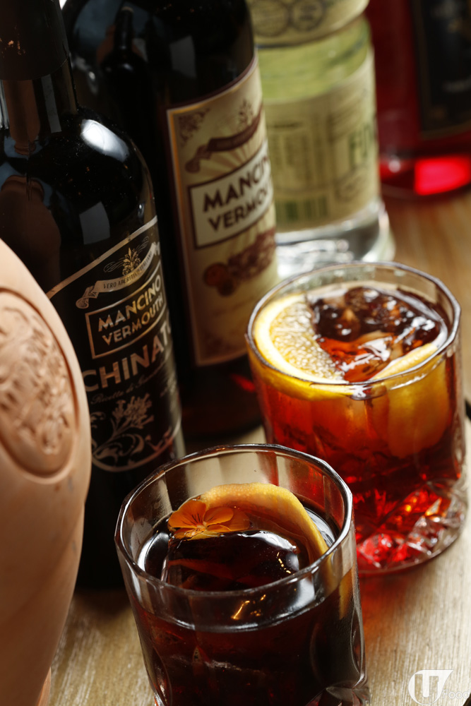12 月中火鍋店會推出多款招牌雞尾酒,圖中 Vintage Negroni (by Giancarlo Mancino) (上)是一杯有帶 Classic 味道 Negroni 雞尾酒,有橙及西柚味作主調,感覺 spicy。另一杯 Chinato Nail (by Giancarlo Mancino) 將 drambuie 蜂蜜酒、whisky 及主酒 Mancino Chinato 混合,再放入陶瓷器通宵浸一晚,令味道更濃厚。各 $108 杯