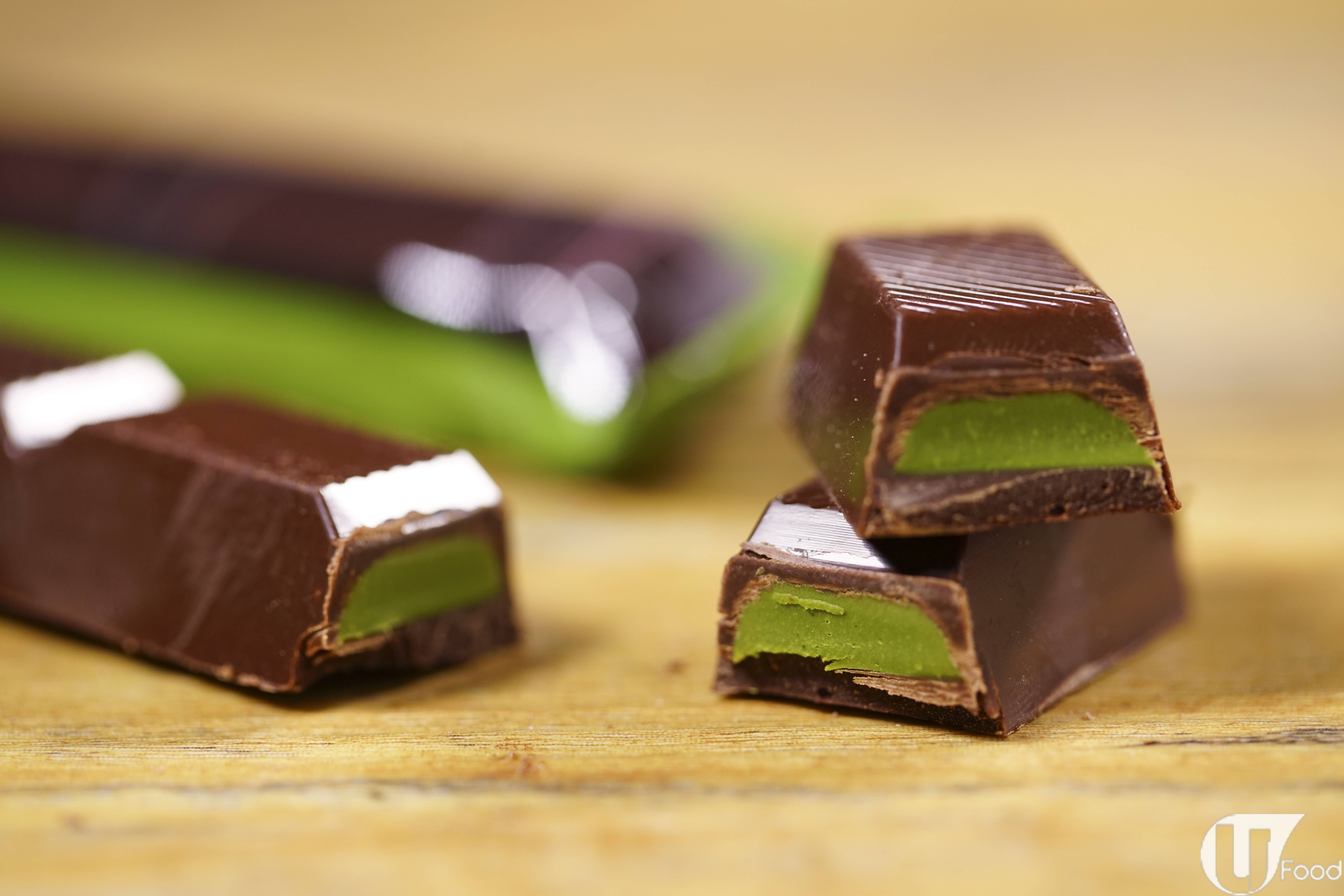 打開包裝,盒內有三條長長朱古力,一條朱古力有 6 粒,計落平均每條要成 $20!食落朱古力味好濃,質感好幼滑,仲有種黏黏感覺。亦因為朱古力味太濃,蓋過了抹茶味,只有淡淡的茶香,如果是抹茶控的話,可能會有點失望。