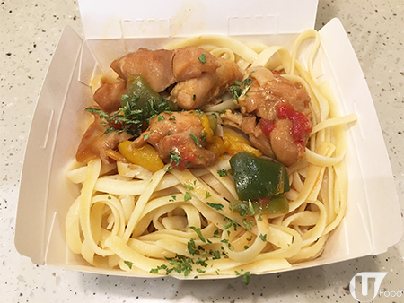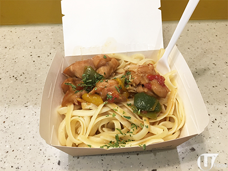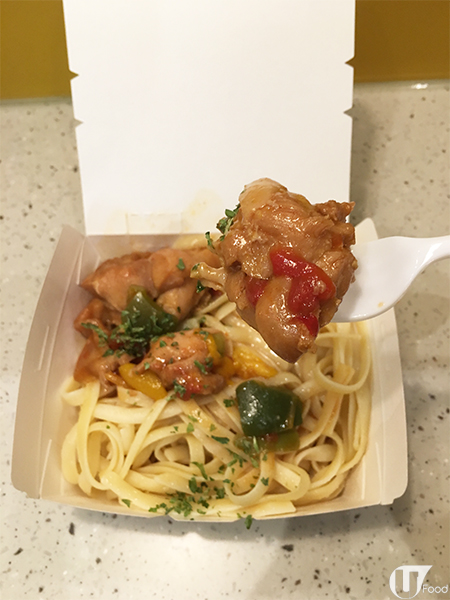 意粉賣相不錯,以雞件伴三色椒,紅黃綠色好繽紛,上面仲加咗香草,有誠意!雞件有 3 件,唔夠多;勝在肉質嫩滑唔乾唔嚡,$19 咋,合格啦!