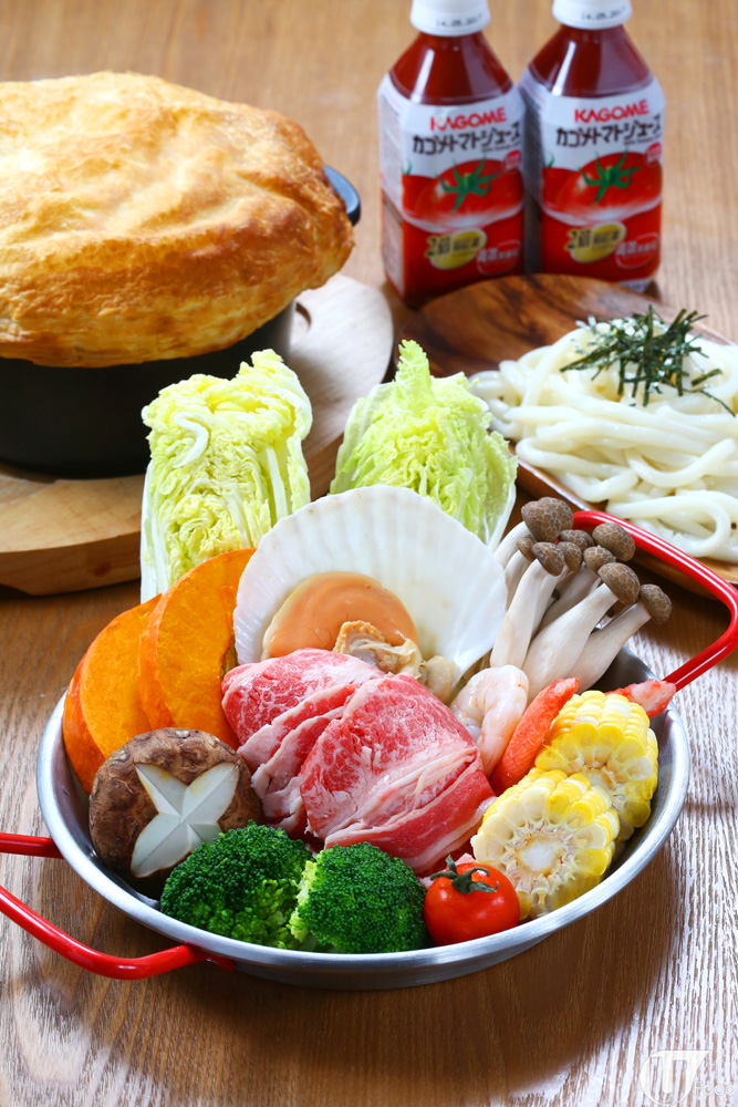 番茄湯底以KAGOME番茄汁、自製番茄醬混合而成,茄香味相當濃郁,而且酸甜度適中,而3.6牛乳又令湯底非常幼滑,味道相當吸引,配上酥皮及美國牛肉、海鮮等,豐富又美味。